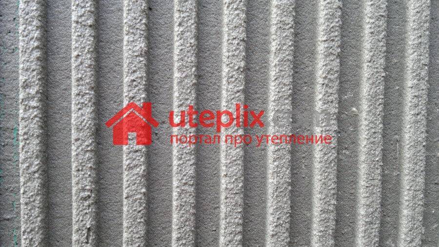 В отличие от отделки фасада пеноплексом, применение пенопласта требует дополнительной подготовки. Добейтесь того, чтобы поверхности каждой плиты пенопласта имели легкую шероховатость. Чтобы получить такой эффект, можете воспользоваться игольчатым валиком или канцелярским ножом. Клеевой состав наносится на шероховатую сторону пенопласта.