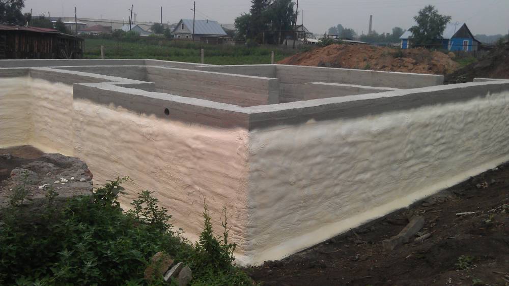 Ряд специалистов считают необходимым нанесение гидроизоляционной битумной мастики перед работами. Однако, в этом нет насущной необходимости: сама пена обладает гидроизолирующими свойствами. В отдельных случаях, при значительной пористости основы имеет смысл предварительное грунтование с целью уменьшения расхода полимеров.