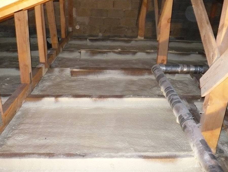 Напыляемый пенополиуретан отзывы профессионалов рекомендуют использовать чаще всего. Процесс его монтажа ничем не отличается от работы со стенами. Материал также напыляется в пространство между обрешеткой. После того как пена полностью высохнет, можно переходить к укладке напольного покрытия.
