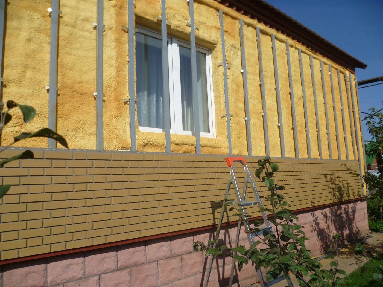 При утеплении пенополиуретаном снаружи, требуется финишная наружная отделка — очень непривлекательный вид имеет поверхность. Зато никаких проблем с промерзанием стен, здание будет служить долго.