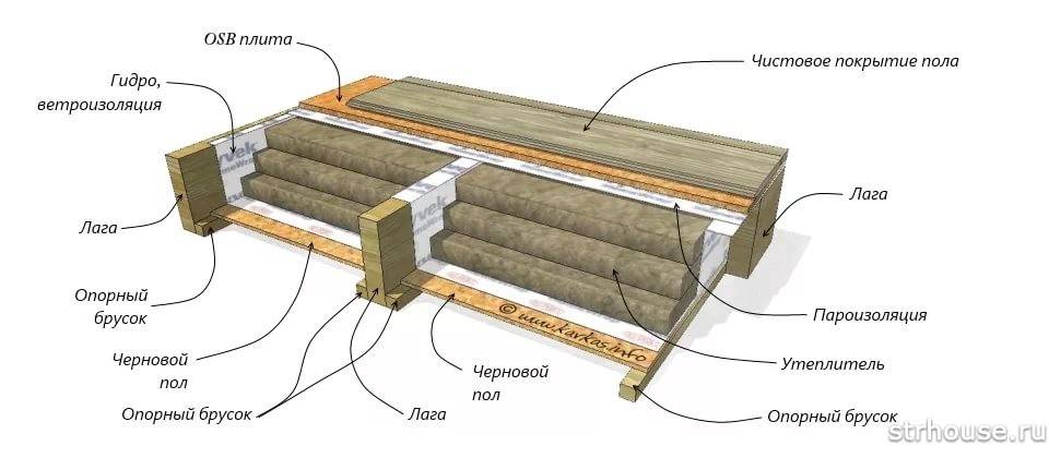 Теплоизоляция деревянного пола на лагах с подполом