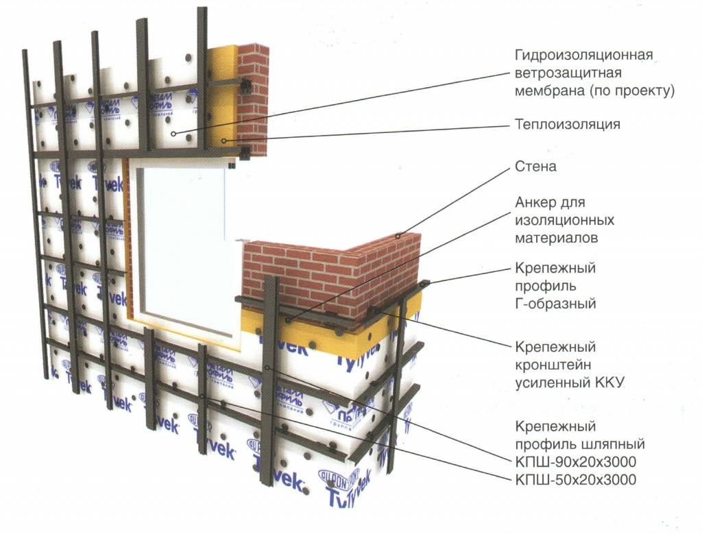 Компоненты каркаса вентилируемого фасада
