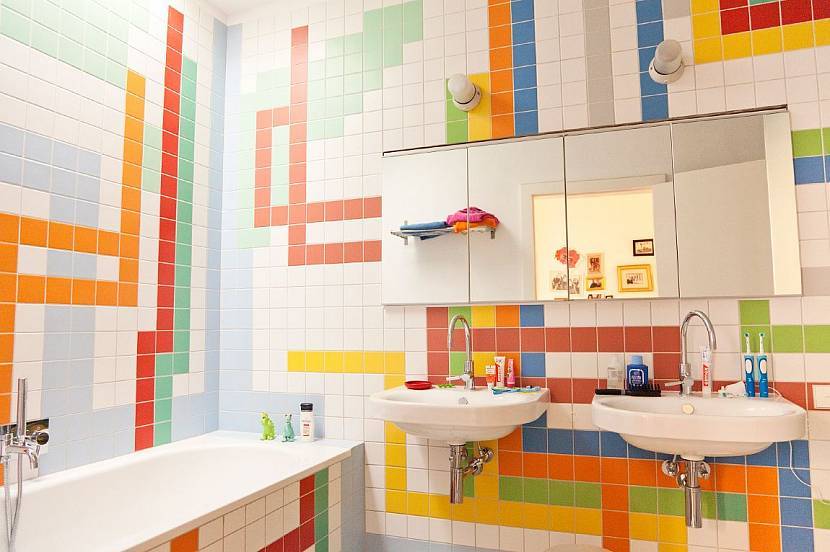 Использование яркой плитки в ваннойИсточник yandex.kz