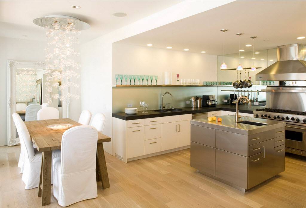 Если вы за эксперименты в дизайне интерьера, и ваша кухня достаточно узкая и вытянутой формы, либо находится в области эркера, задействуйте смежные стены с двумя углами, расположенными между ними.