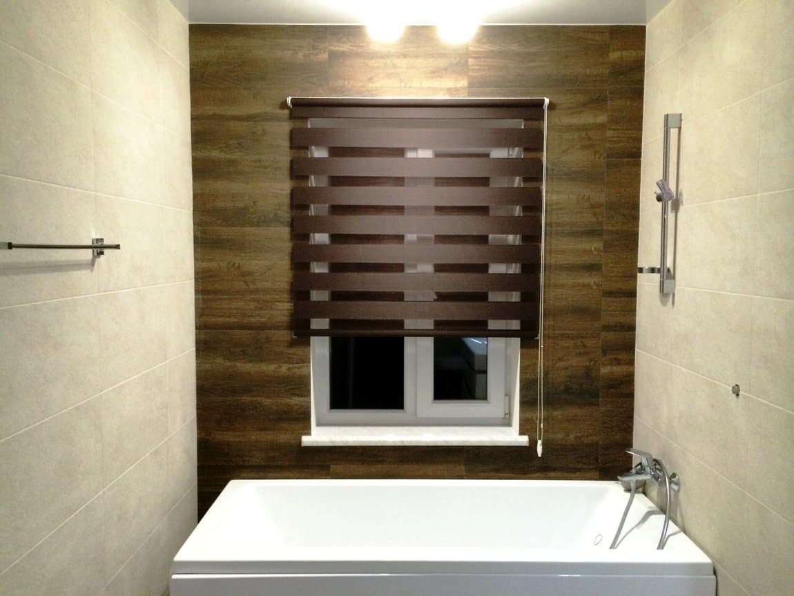 Для ванной комнаты такие шторы тоже подходят, как и кассетные. Только они будут закрывать полностью весь проем — полотно должно превосходить ширину окна минимум на 10 см.