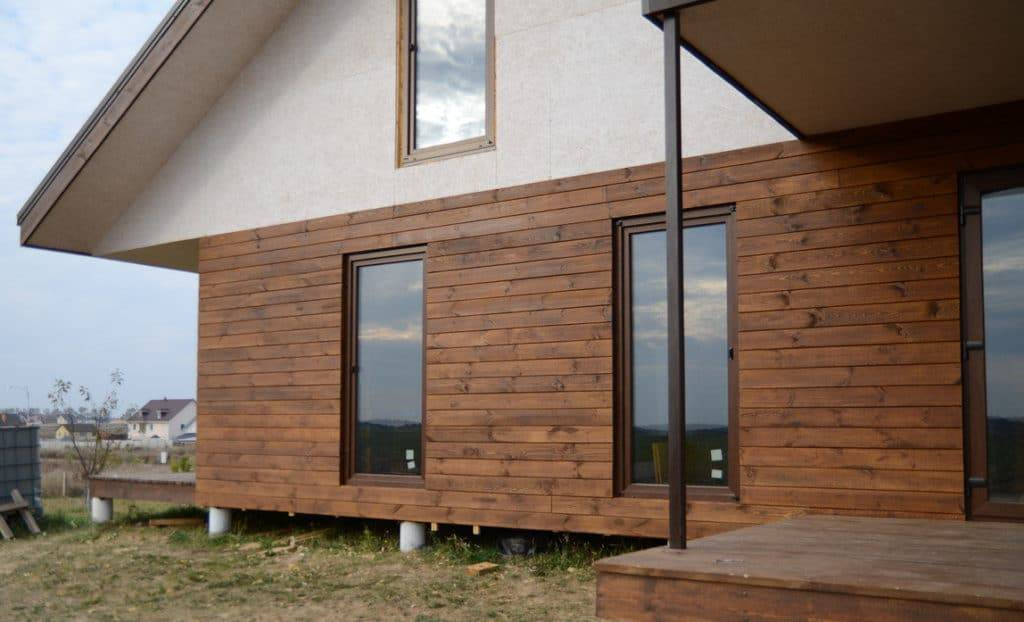 Деревянная обшивка, которую окрашивают специальными составами для сохранения древесной структуры.