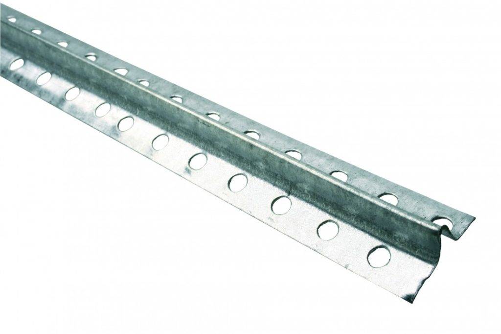 Угловой профиль защищает гипсокартонные углы от повреждений при эксплуатации. Крепится он на слой шпаклевки, поэтому имеет перфорацию, через которую выдавливается лишний раствор. Длина таких элементов – 3 метра, по ширине выпускаются уголки со сторонами 25 или 31 мм.