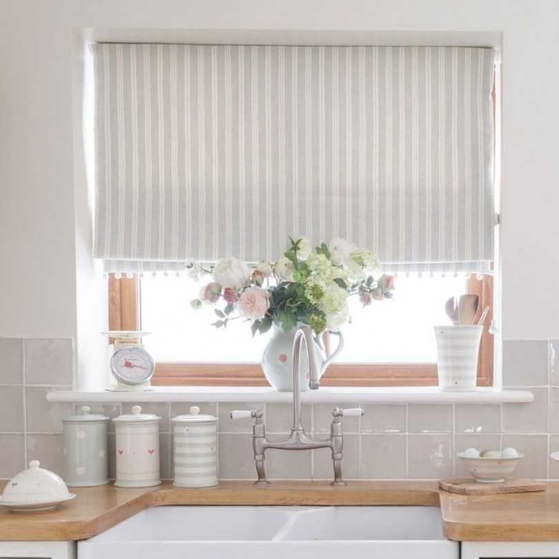 Римские и рулонные шторы имеют много общего. Если рулонные собираются на вал сверху, скручиваясь в рулон, то римские собираются в складки при подъеме. И тот и другой вариант очень удобен для использования на кухне. Отсутствие необходимости задергивать их руками сохранит чистоту ткани надолго, а легкий подъем вверх обеспечит свободный доступ к подоконнику.