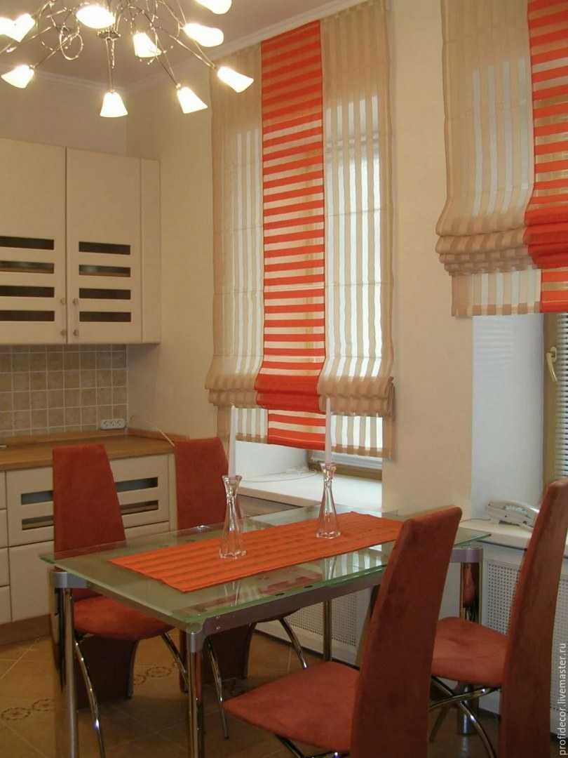 Поэтому среди всех фасонов римские и рулонные бьют все рекорды, ведь для кухни это идеальные варианты по многим параметрам – практичность, компактность, пожарная безопасность, прочность и износостойкость и др.