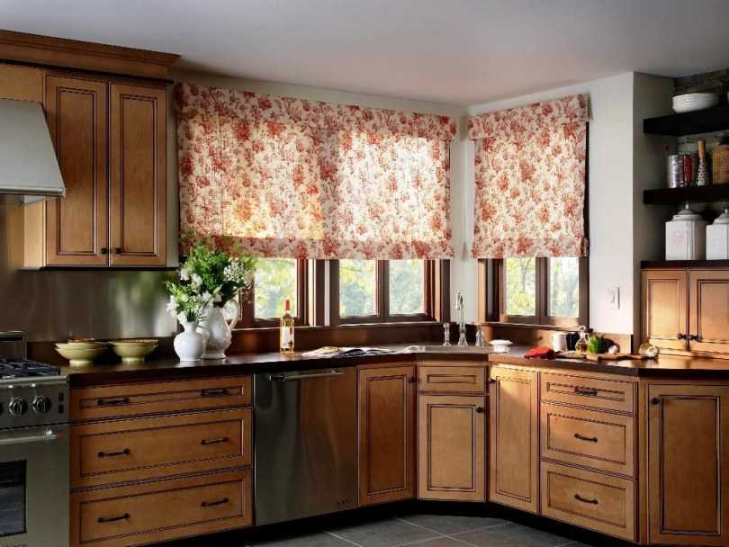 Для кухонных занавесок в классическом или традиционном стиле характерны: