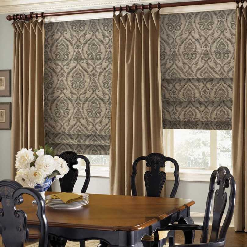Если необходимо оформить окно в рабочей зоне, то удачными вариантами будут австрийские или римские с характерным классическим орнаментом.