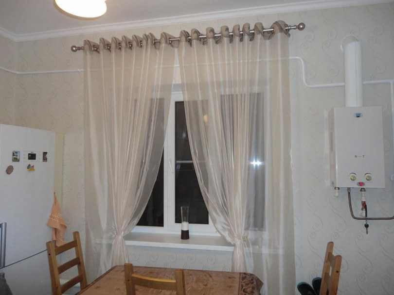 В малогабаритных кухнях , где плита расположена рядом с окном, целесообразно использовать изделия из огнестойких материалов,. Снизить риск возгорания можно с помощью петель и завязок, которые фиксируют занавеску к стене. Самым оптимальным и практичным вариантом для кухонных занавесок считается полиэстер, вискоза и лен с добавлением синтетических волокон.