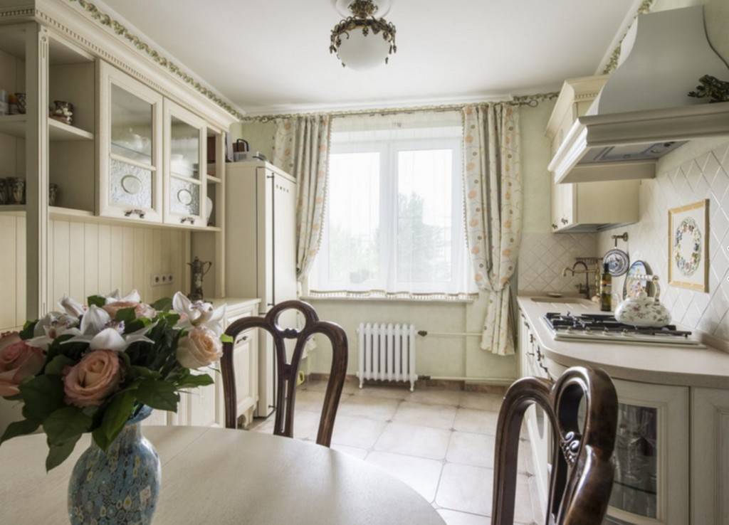 Однако лучше всего, если занавески не будут подавляющими – лучше легкими и прозрачными. Чтобы они не чрезмерно впитывали влагу и кухонные запахи. Если вам интересно, какие занавески подойдут для классической кухни, мы предлагаем, чтобы они были из такого материала, как бархат или жаккард. Тем не менее, их более легкие версии (или лен или хлопок) будут хорошо сочетаться с оттенком романтизма в интерьере.