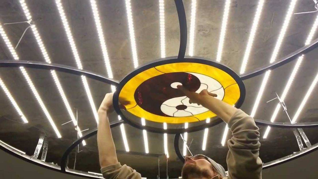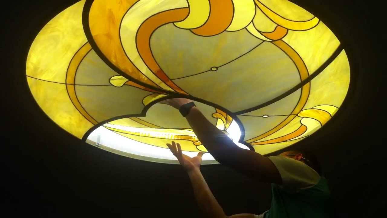 Монтаж потолочного витража, выполненного по технике Тиффани