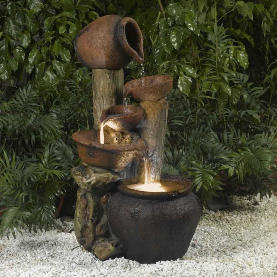 Не всегда есть место под такое массивное сооружение, разметом в несколько метров. А небольшой водопад можно поставить возле скамейки, беседки, в любимом уголке сада. ТАкие декоративные устройства требуют совсем маломощных насосов, типа аквариумных.