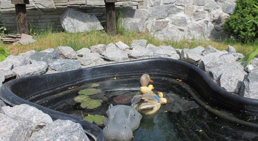 И не забываете об уходе за водоемом, чтобы насос не забился и не сломался. Пруд можно очищать сачком. За лето необходимо два-три раза сливать воду, чистить дно бассейна и снова наполнять его водой. Если лето с частыми и сильными ливневыми дождями, то можно очистку водоема сократить — во время таких дождей происходит отличное самоочищение.