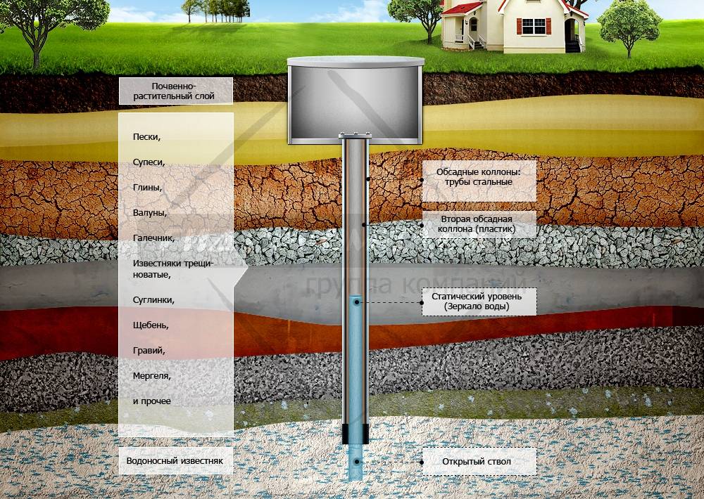 Скважина может быть артезианской либо песчаной. Первый вариант считается самым дорогим удовольствием, так как водоносные горизонты, используемые в данном случае, залегают глубоко от земной поверхности. Чтобы до них добраться, приходится применять специальное оборудование, аренда которого стоит недешево.