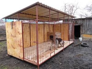 Собачий вольер должен иметь три сплошных стены, чтобы не допустить возникновения сквозняков. И одну стену с решёткой, чтобы была возможность обзора территории. Некоторые владельцы устраивают две глухих стены и третью зашивают лишь наполовину. Всё это делается для того, чтобы собака не чувствовала себя взаперти, а также для увеличения количества света в вольере.