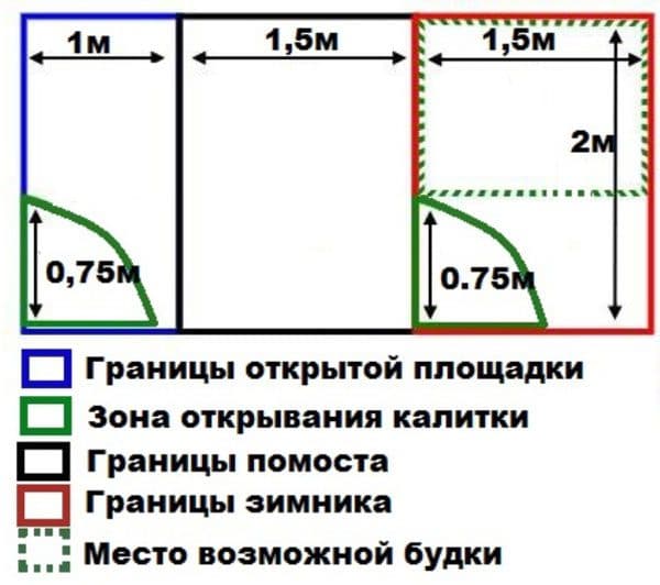 При строительстве вольера можно воспользоваться этой схемой