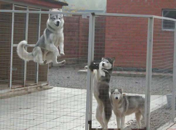 Отдельного разговора заслуживает вольер для собак хаски. Эта порода отличается своей активностью. Держать хаски в доме нежелательно – ей нужен простор и место для выгула. Хаски имеют рост до 60 см в холке в среднем. Но для них лучше обустроить огражденную территорию большей площадью – около 10-15 квадратов. Прямоугольник с соотношением сторон 2:3 считается оптимальным вариантом ограждения для хаски.