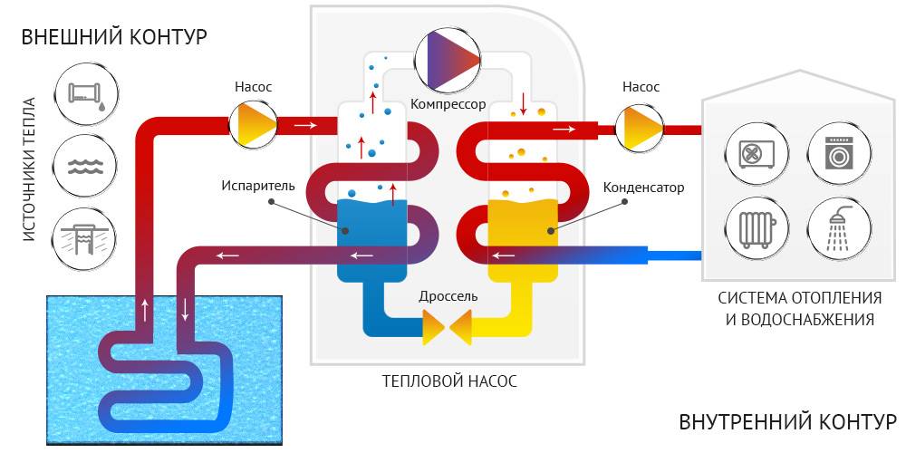 - контур с теплоносителем, который перемещает энергию от теплоисточника;