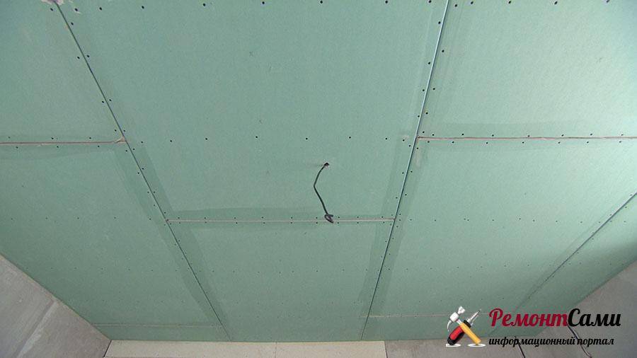 Теперь рассмотрим, как установить каркас и гипсокартон на потолок.