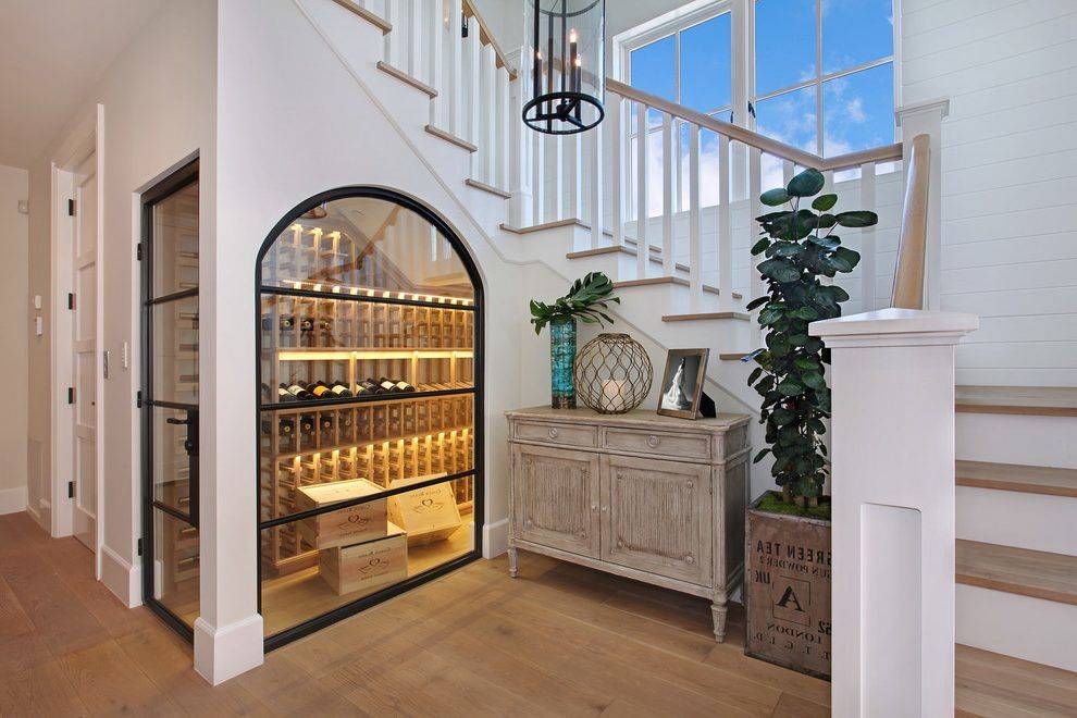 А под лестницей на цокольный этаж можно разместить коллекцию вин