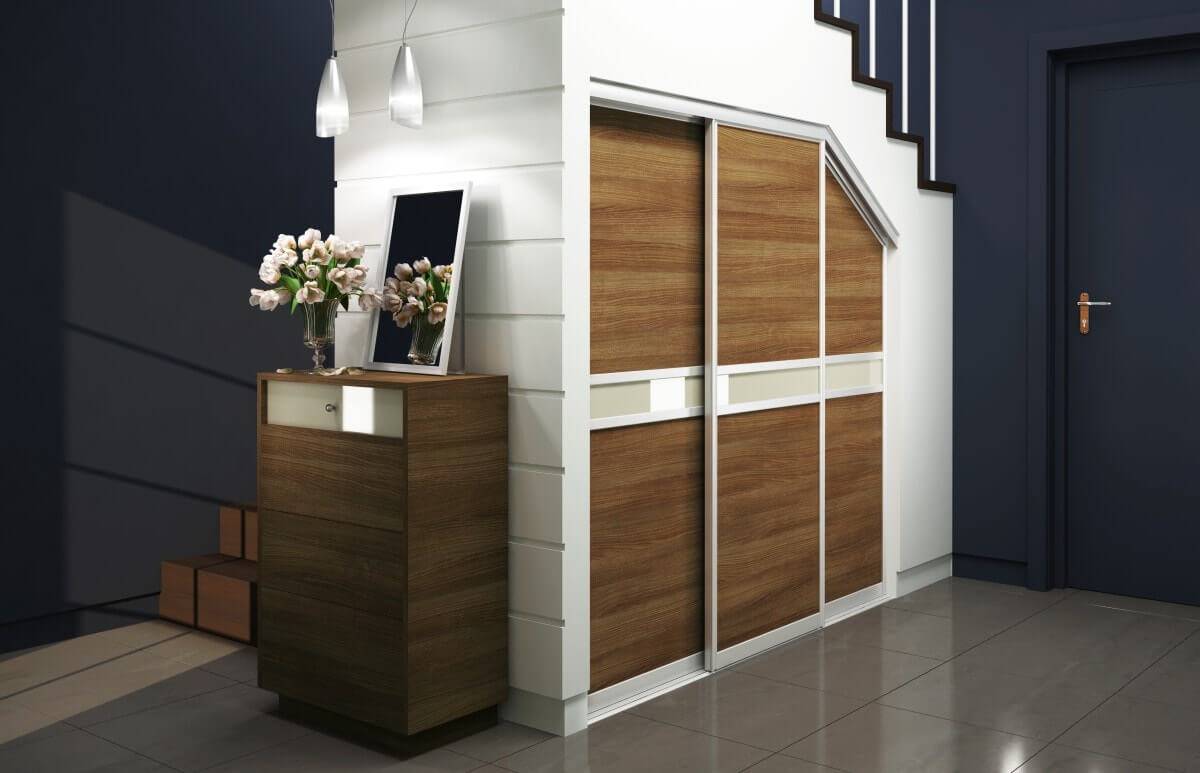 Шкаф, находящийся рядом с лестницей или под ней, — это практичное, удобное решение. Существуют несколько видов подобных конструкций: