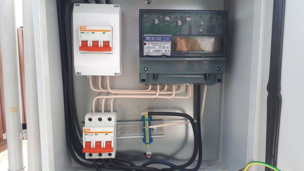 Он должен быть огнестойким и не распространять горение. Эта часть ввода, протянутая до щитка, дополнительно защищается автоматическим выключателем. Автомат также применяется, когда используются неизолированные провода, подключенные к отрезку соединительного кабеля. Во всех случаях номинальное значение автомата должно быть выше на одно значение по сравнению с вводным щитом