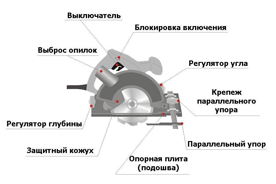 Современная «циркулярка» представляет собой технически сложный инструмент, состоящий из нескольких обязательных элементов: