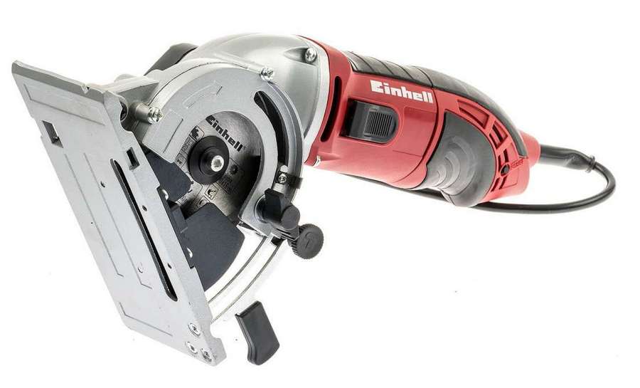 Весьма дорогой и производительный вариант, оснащенный множеством дополнительных опций. Однако, это сильно повлияло на общую стоимость. Способен обрабатывать детали из любых материалов, для которых приспособлены миниатюрные циркулярки. Обладает блокировкой случайного включения.