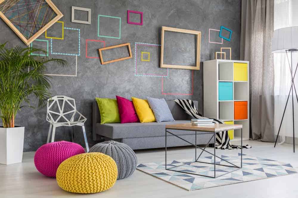 Также не следует забывать, что в 2021 году институтом Pantone были выбраны два самых популярных цвета: серый под названием Ultimate Grey и Yellow Illuminating. Итак, давайте рассмотрим их расположение в вашей гостиной. Как и в случае с другими интерьерами, серый оттенок может стать основой для красочных украшений, таких как: