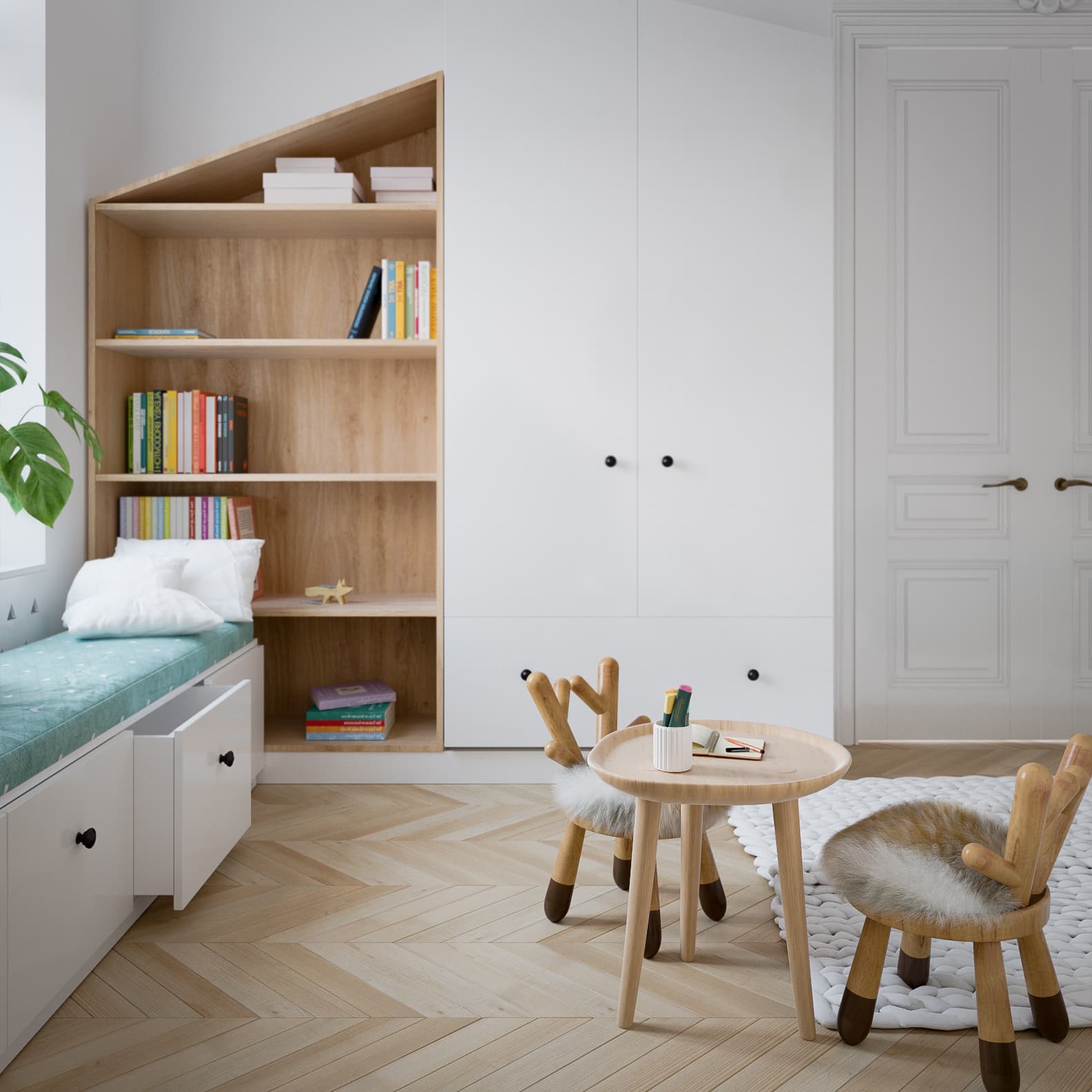 Спальня для ребенка не должна быть типичной. Здесь необходимо поиграть с красками, различными решениями и элементами декора (если это уместно). Как правило, использовать неожиданные идеи можно органично, учитывая возраст и пол ребенка.