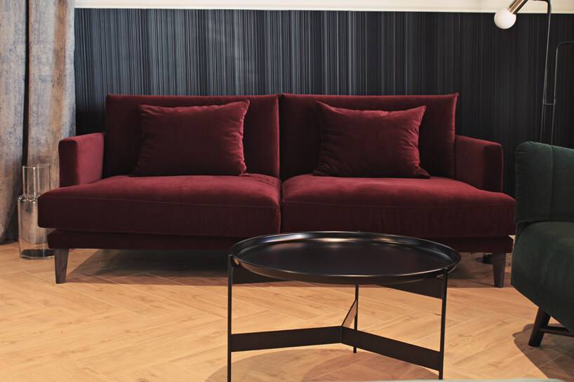 Еще одним трендовым материалом становится нарядный изысканный бархат, выступающий в роли мебельной обивки. Эта ткань привлекает богатством оттенков, приятной мягкостью, грандиозными переливами, некоторой театральностью и ироничностью.
