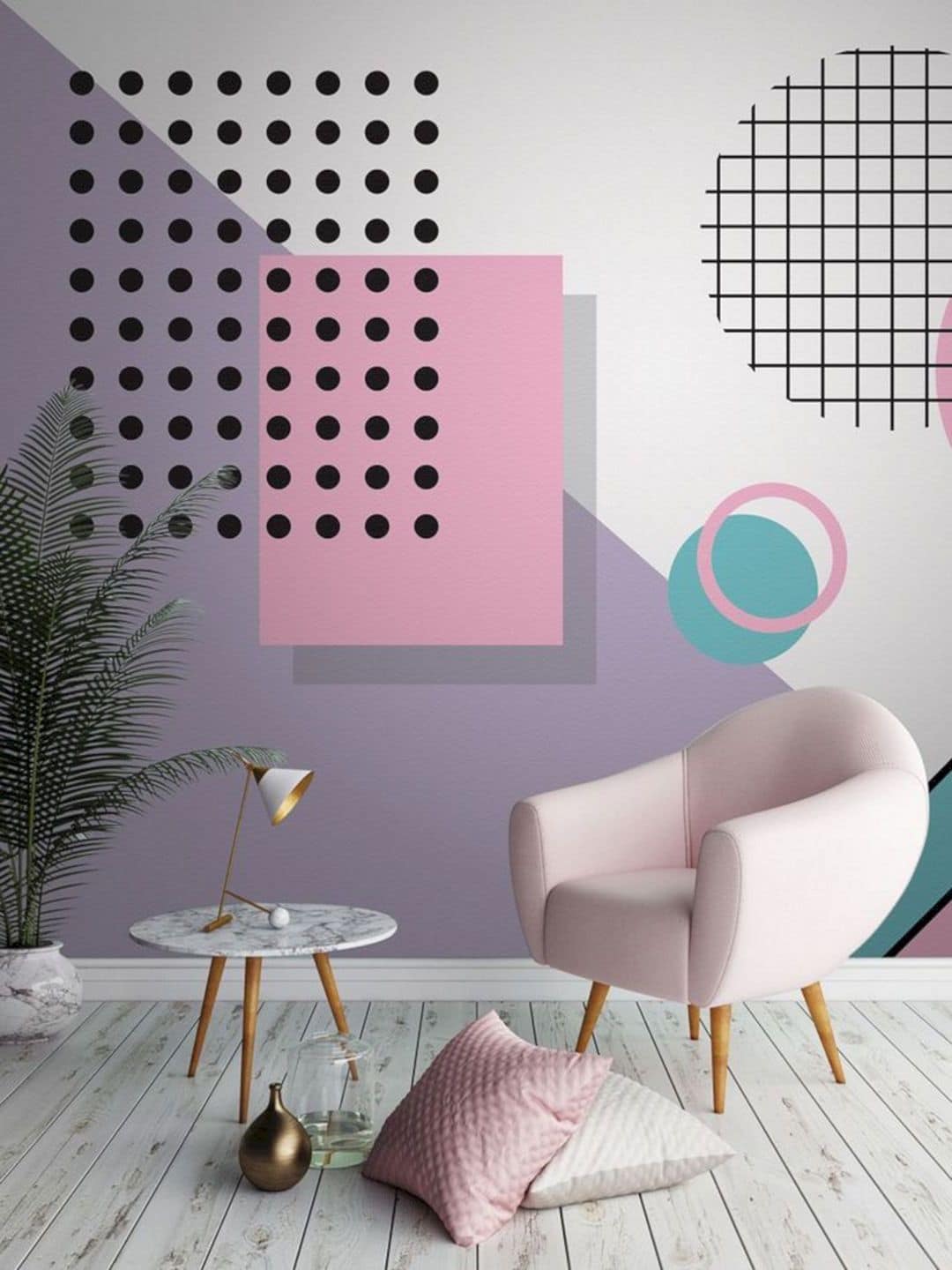 Набирает популярность стиль мемфис, органично сочетающий самые оригинальные формы, сочные акцентные оттенки, геометрические узоры. Здесь уместны картины, коллажи, разнообразные текстуры и материалы.
