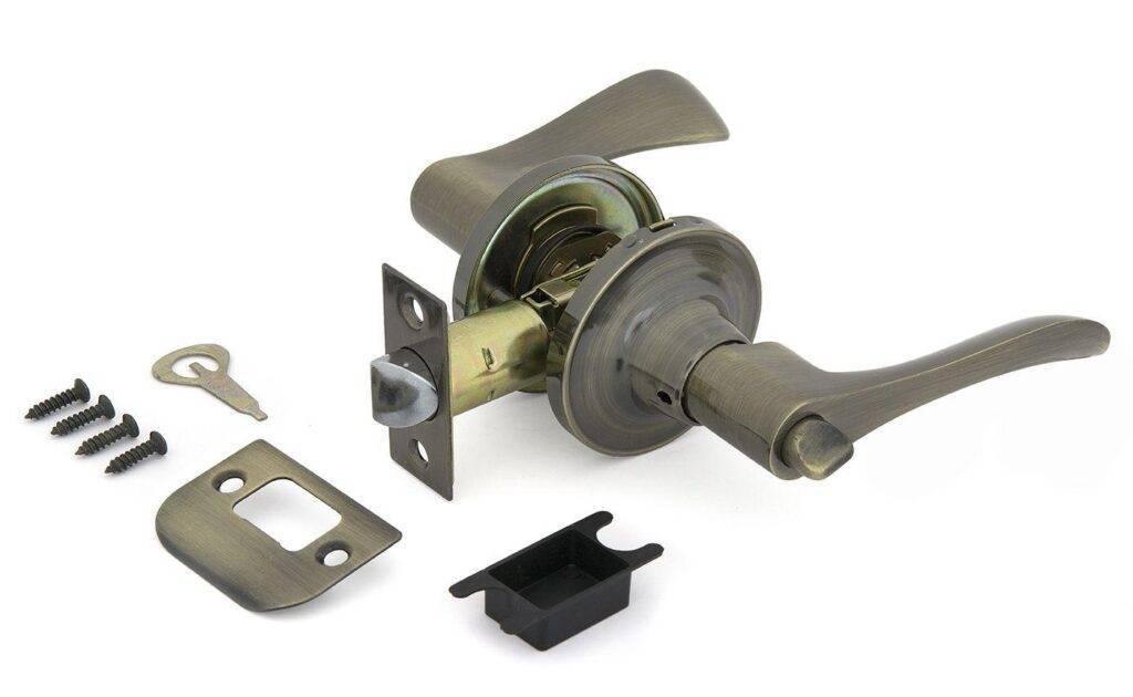 В межкомнатном варианте запирание не особо востребовано, но если такая конструкция обязательна, то выбирается специальный встроенный в дверное полотно красивый замок, который состоит из поворотной пластины, затвора, пружины, рычага для удержания, защелки, крышки корпуса.