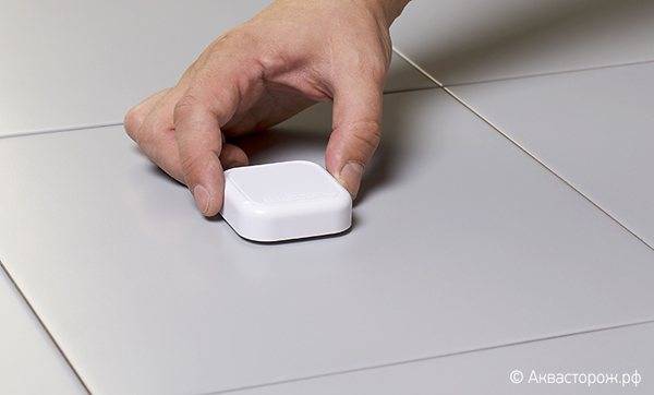 Датчики раскладываются в местах возможных протечек, и если нужно, закрепляются на полу двусторонним скотчем.
