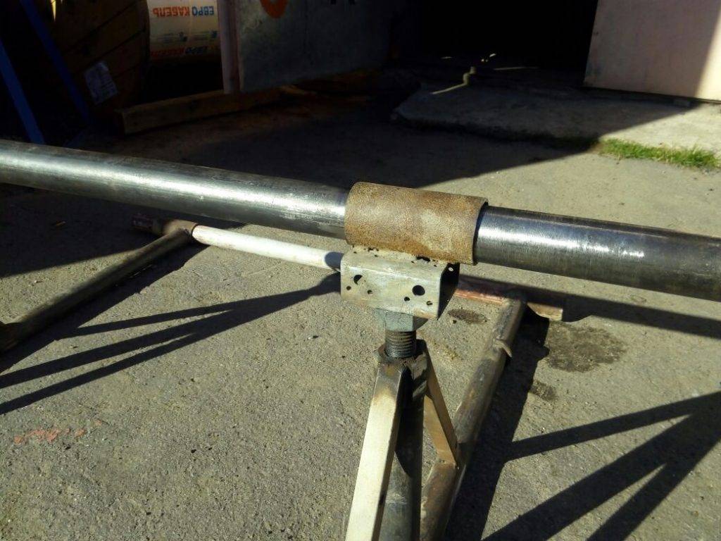 - Сам анкерный стержень крепят на кусок трубы подходящего диаметра. Еще один кусок позиционируют ниже центральной точки. После фиксации стержня дно нижней трубочки заваривают, после чего проверяют вращение анкера.