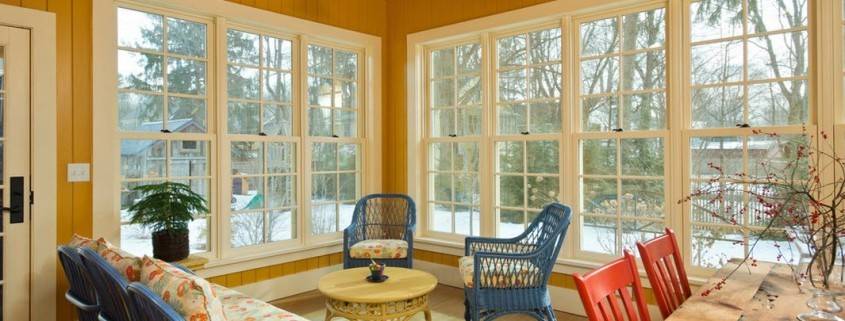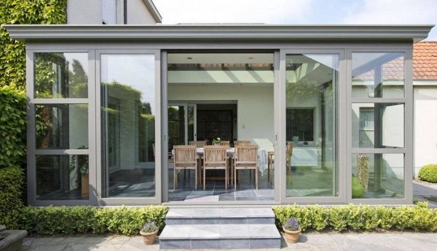 Очень часто на веранде устанавливают раздвижные окна, которые будут двигаться и открываться по направляющим. Это обеспечивает экономию пространства, однако снижает герметичность конструкции.
