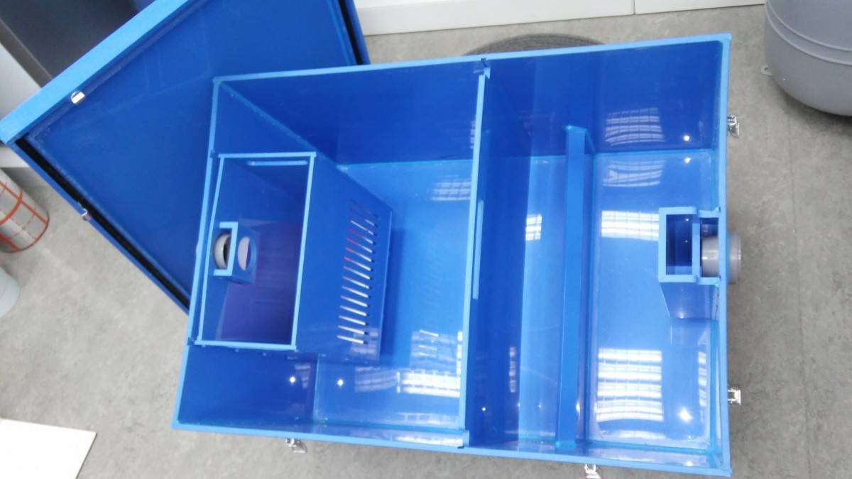 Жироуловители из стеклопластика отличаются большей прочностью и устойчивостью к возможному воздействию агрессивных химических веществ и неблагоприятных погодных условий. Устройства имеют небольшой вес, надежны и, так же, как и приборы из пластика, при необходимости легко очищаются. Оборудование из стеклопластика может быть предназначено для установки в помещении или же для улицы. Прочность материала это позволяет.