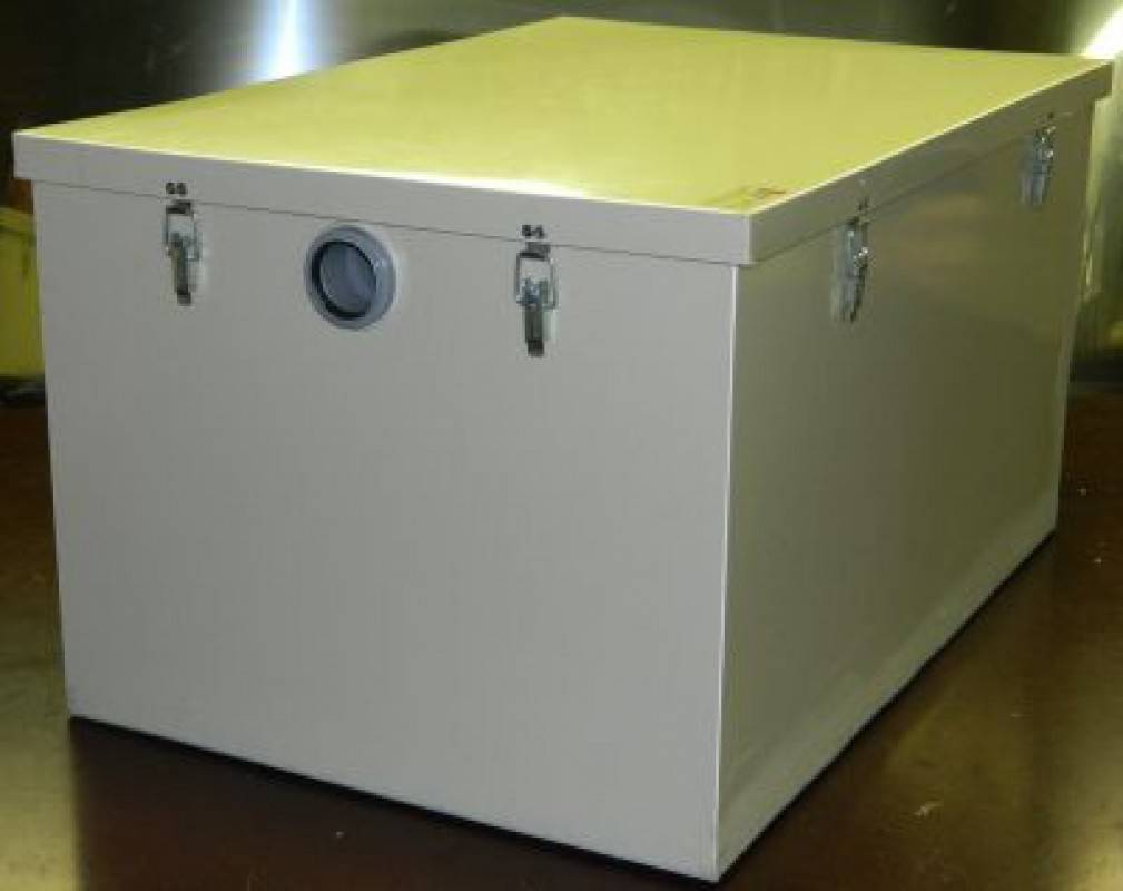 - Находим подходящую тару (форма прямоугольного параллелепипеда) из пищевой пластмассы, полипропилена, стеклопластика, оцинкованной стали или нержавейки. У тары должна быть плотная крышка. Можно использовать ящик из пластмассы для игрушек. Подойдет дюралевый уголок от старого аквариума, где треснуло стекло. Его удаляют, а на каркасе изготовляют короб из листов стеклопластика толщиной 6 мм. Резать их непросто, зато конструкция получится прочная, водостойкая.