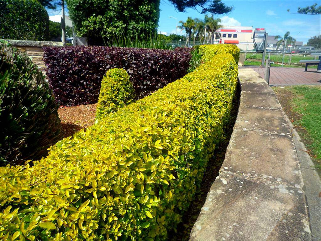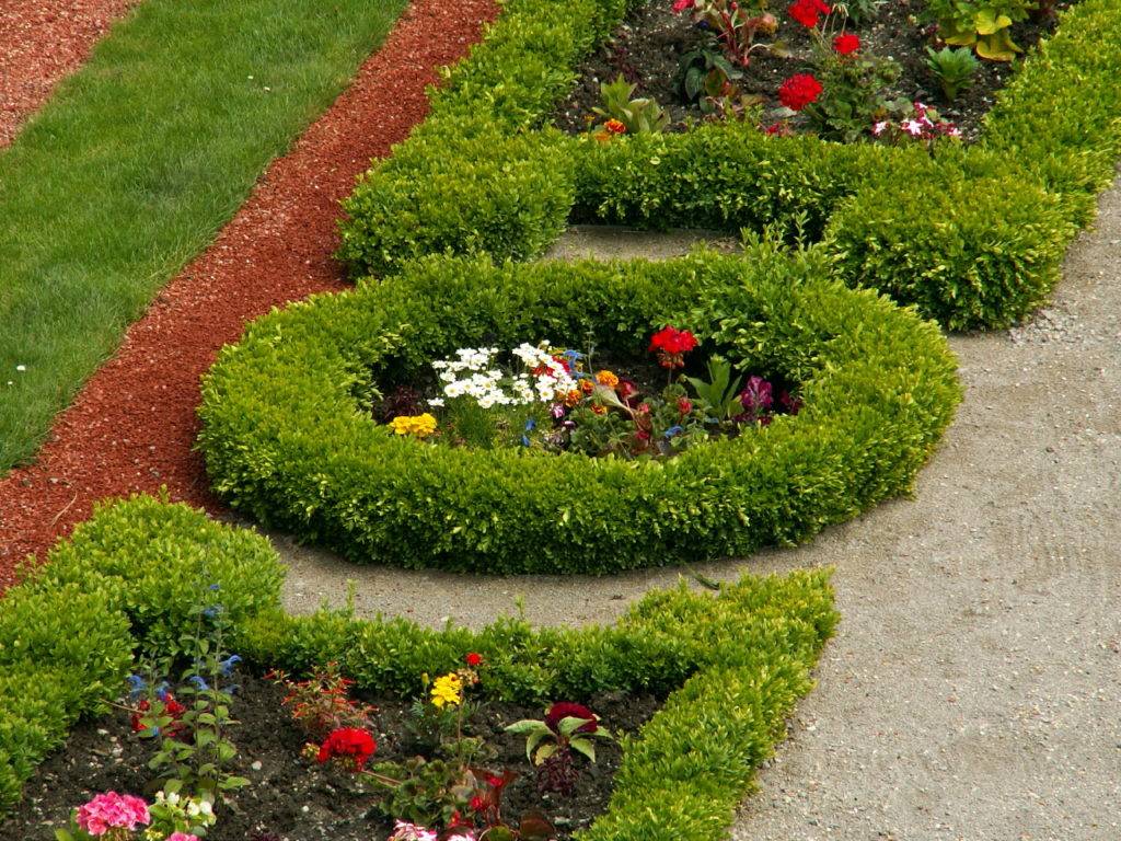 Низкая живая изгородь называется еще бордюром. Она достигать может в высоту полуметра. Чаще всего используется как живое зеленое обрамление для цветника или клумбы, для обозначения зон на участке, просто с целью декоративного оформления. В этом случае выбирают из кустарников, некоторых травянистых или цветущих растений. Для стриженных живых изгородей небольшой высоты подойдут:
