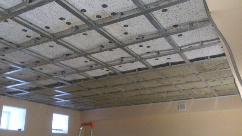 - Шумоизоляционные подвесные панели укладываются на металокаркас.
